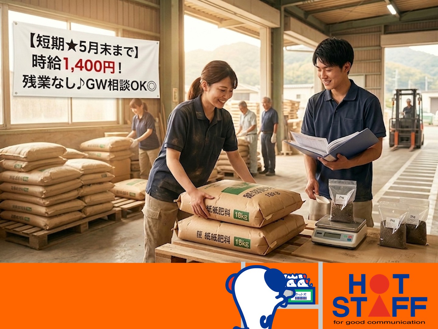 【短期★5月末まで】残業なし♪GWも相談OK◎肥料の袋詰め&手積み!■南区・時給1400円■