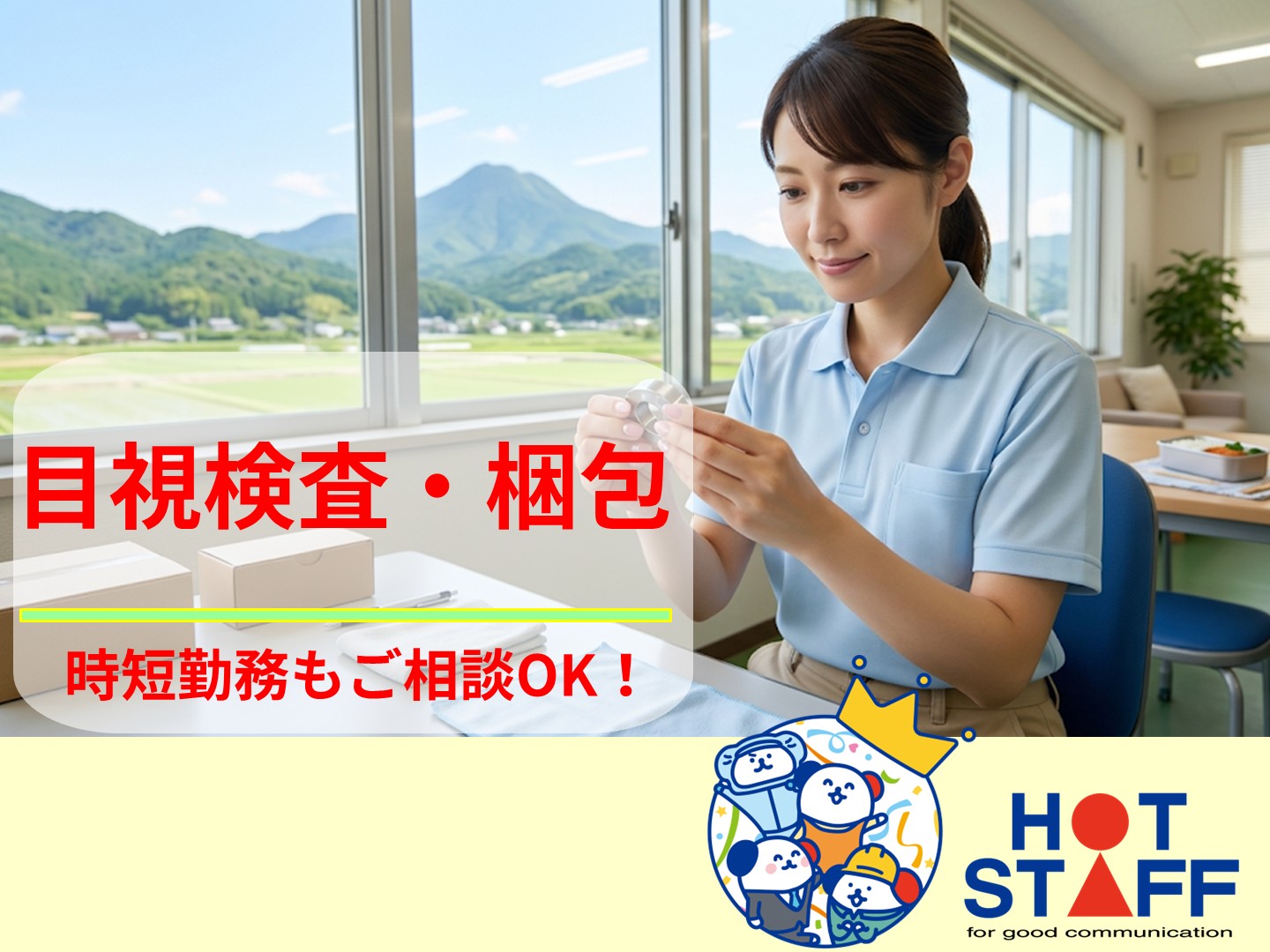 時短OK&ネイル自由♪空調完備でカイテキ◎カンタン目視検査と出荷準備■奈義町・時給1250円■