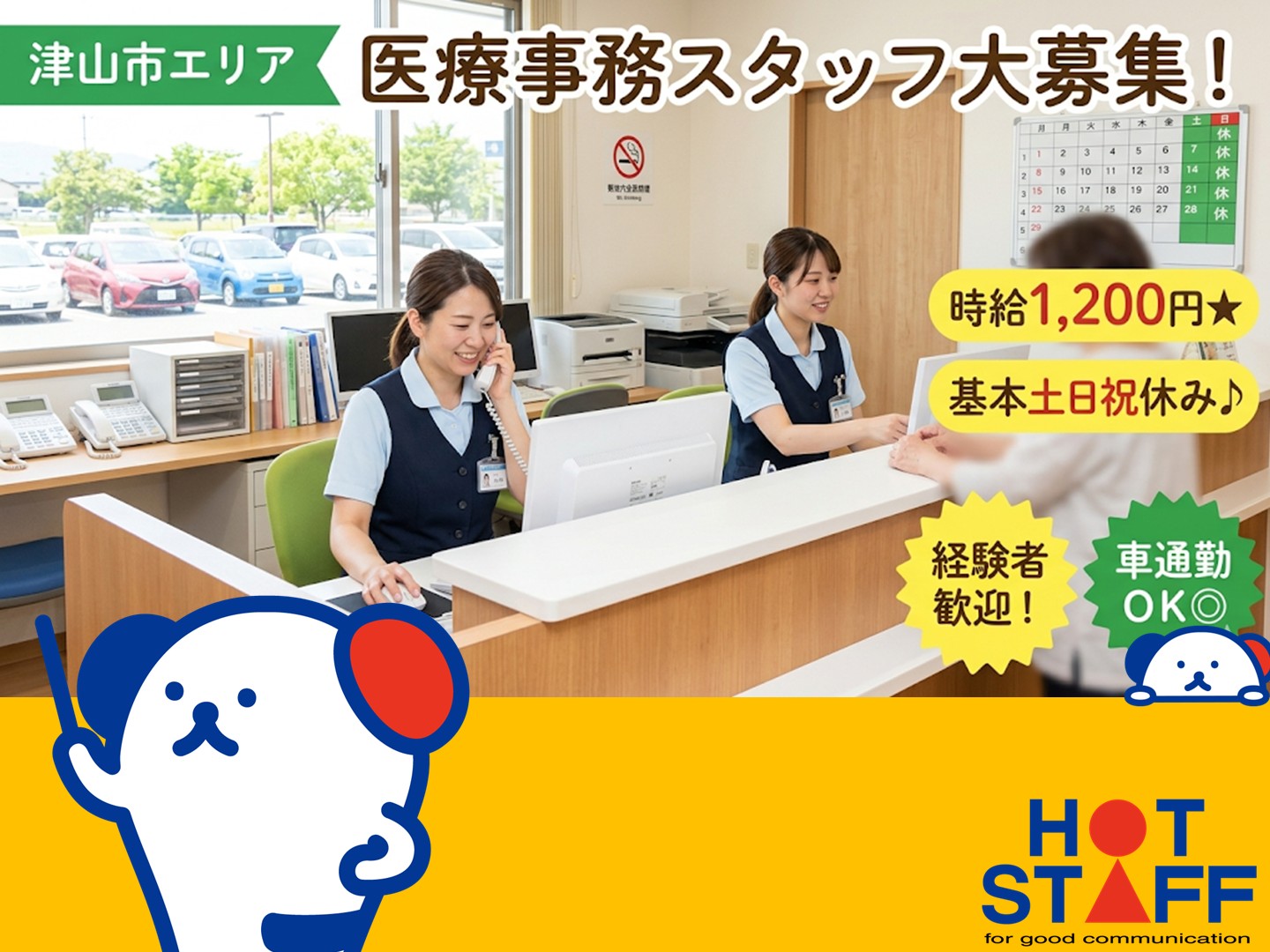 医療事務の経験者歓迎★基本土日祝休&車通勤OKでプライベートも充実♪■津山市・時給1,200円■