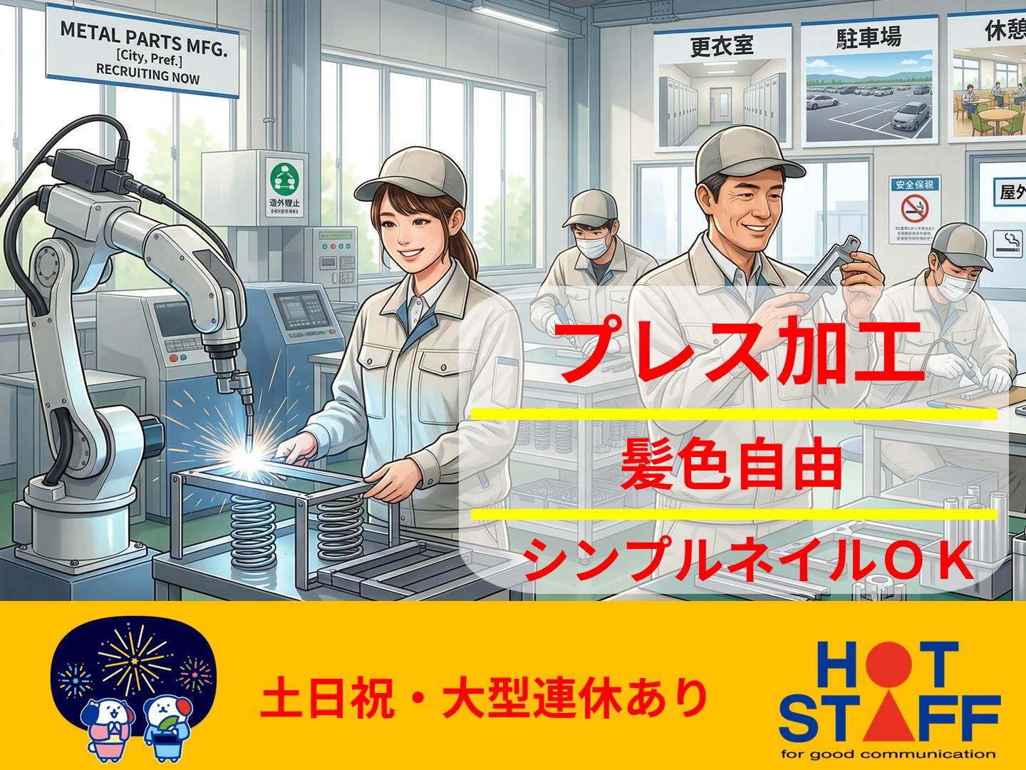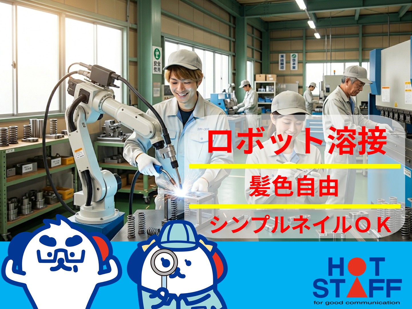 未経験歓迎のロボット溶接やカンタン加工♪髪色自由であなたらしく働ける工場★■東区・時給1200円■
