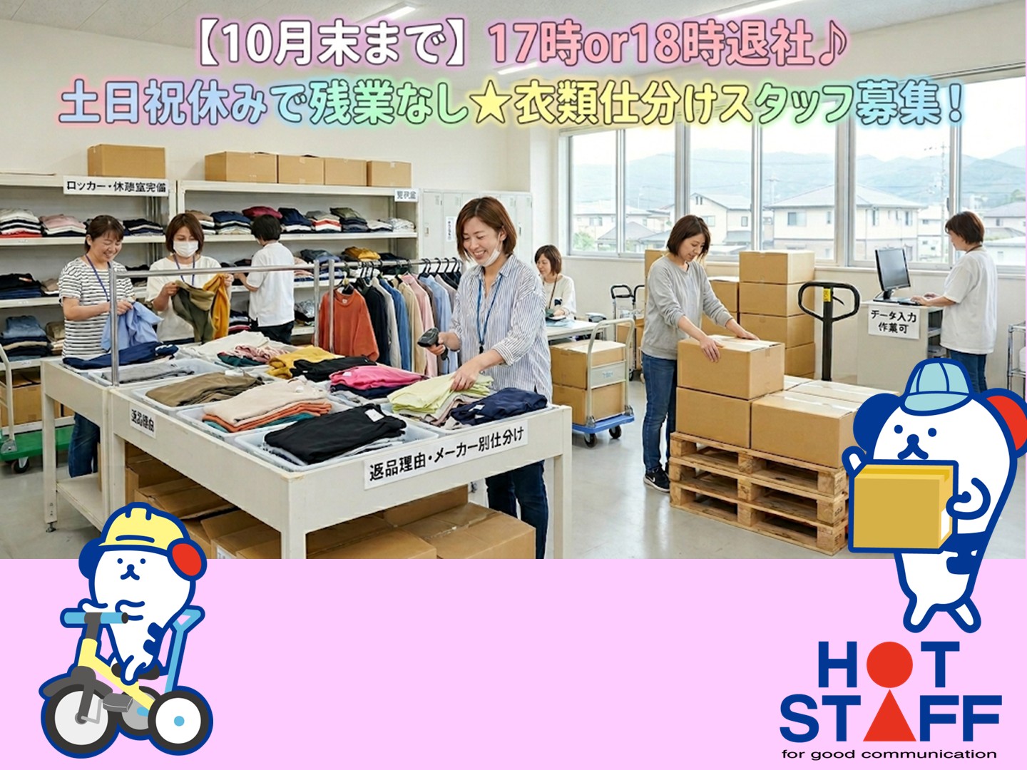 【10月末迄】17時or18時退社♪土日祝休みで残業なし★衣類仕分けスタッフ■東区・時給1100円■