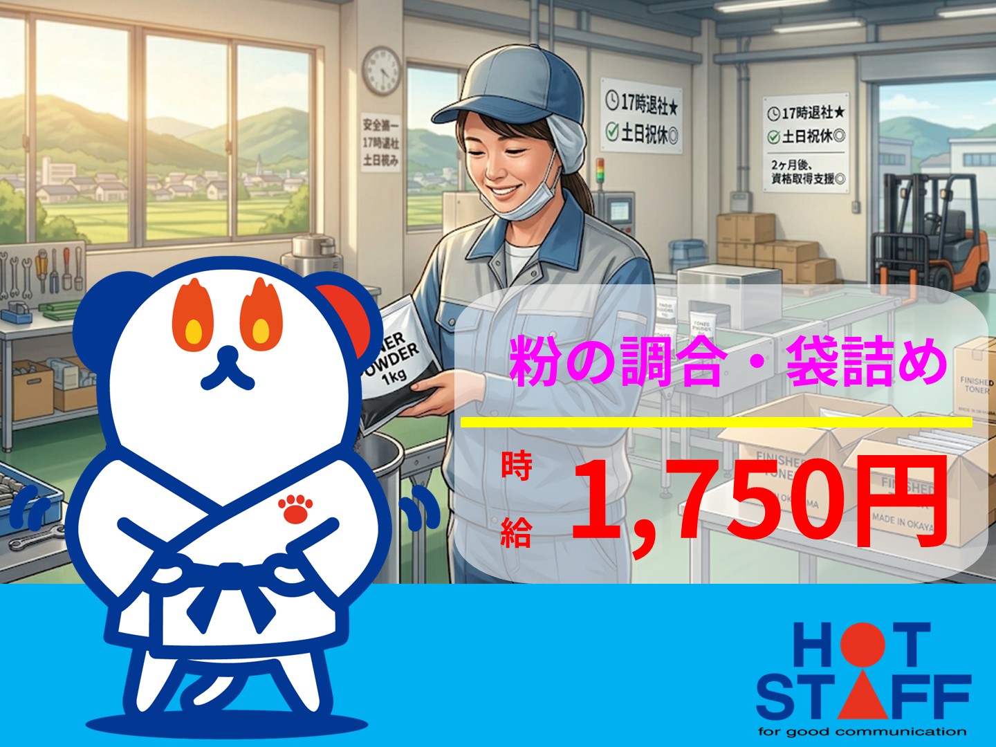 日勤専属★17時退社で自分時間充実♪土日休み&未経験OKのトナー製造・袋詰め■北区・時給1750円■