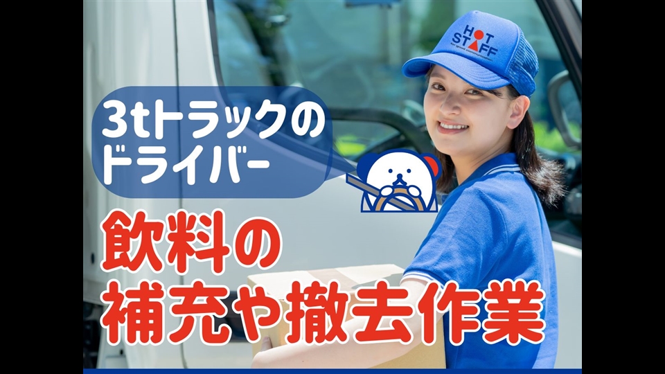 【未経験OK】自動販売機に飲料の補充や回収作業/3tトラックドライバー/土日休みもOK