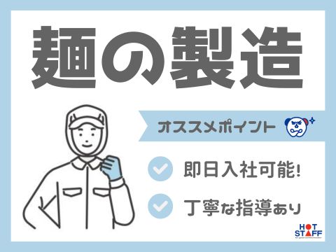 【未経験OK】様々な麺類の製造スタッフ/従業員特典あり/土日休み