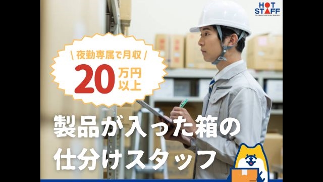 【自分のペースでOK】製品が入った箱の仕分け作業/夜勤専属/未経験OK
