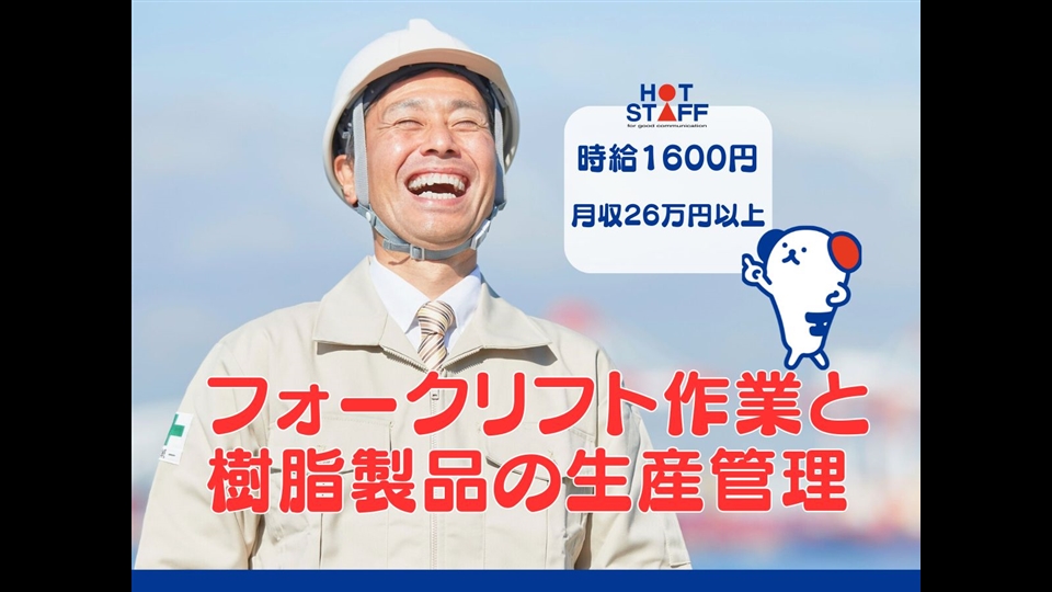 【経験を活かせる】フォークリフト作業と樹脂製品の生産管理/日勤専属で月収26万以上/土日休み