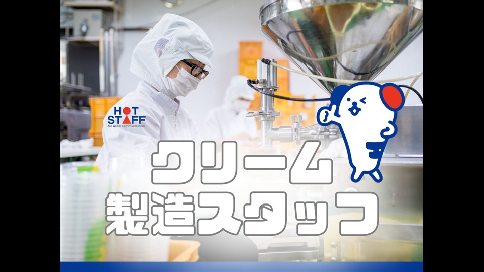 【時間帯を選べる】様々なフレーバーのクリーム製造スタッフ/土日休み/定時退社
