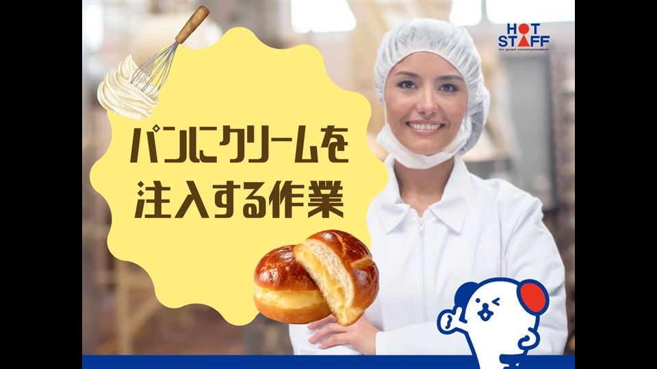 【時間帯が選べる】パンにクリームを注入する作業/扶養内勤務OK/きれいな職場
