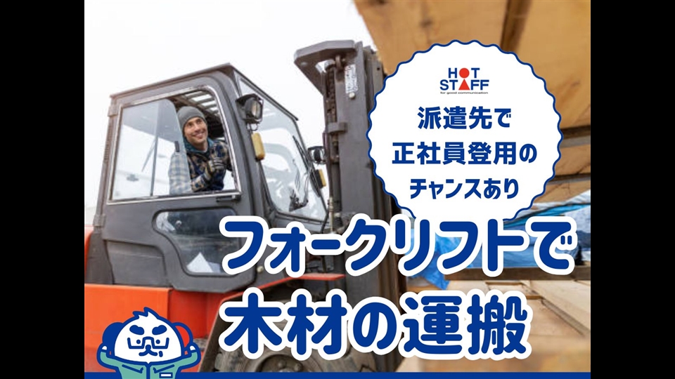 【土日休み】フォークリフトで木材の運搬/マニュアル完備/昇給のチャンスあり