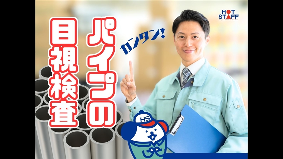 【月収20万円以上】パイプの目視検査/作業ノルマなし/8:20~17:00