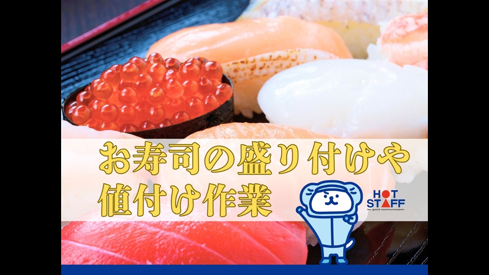 【未経験OK】お寿司の盛り付けや値付けスタッフ/じっくりと教えてもらえる環境/時間帯選べる