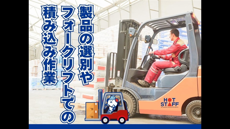【資格を活かせる】フォークリフトを使って荷下ろし作業/勤務時間選べる/石内上勤務
