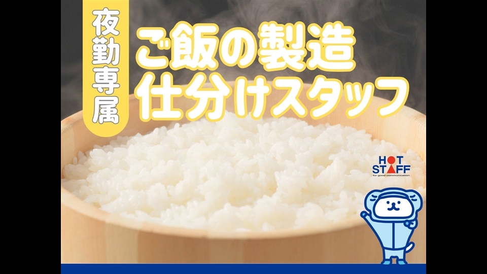 【週3日から勤務OK】ご飯の製造・仕分けスタッフ/未経験OK/夕方~深夜の勤務