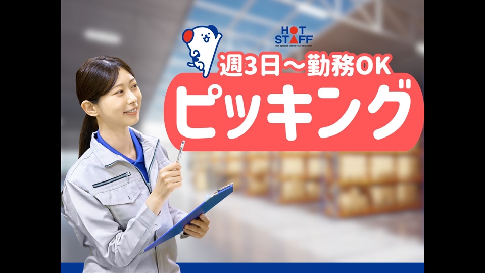【週3日から勤務OK】食品倉庫のピッキングスタッフ/空調完備で快適/時間帯が選べる