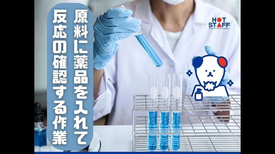 【実験が好きな方必見】原料に薬品を入れて反応の確認をする作業/最短3日で入社可能/土日祝休み