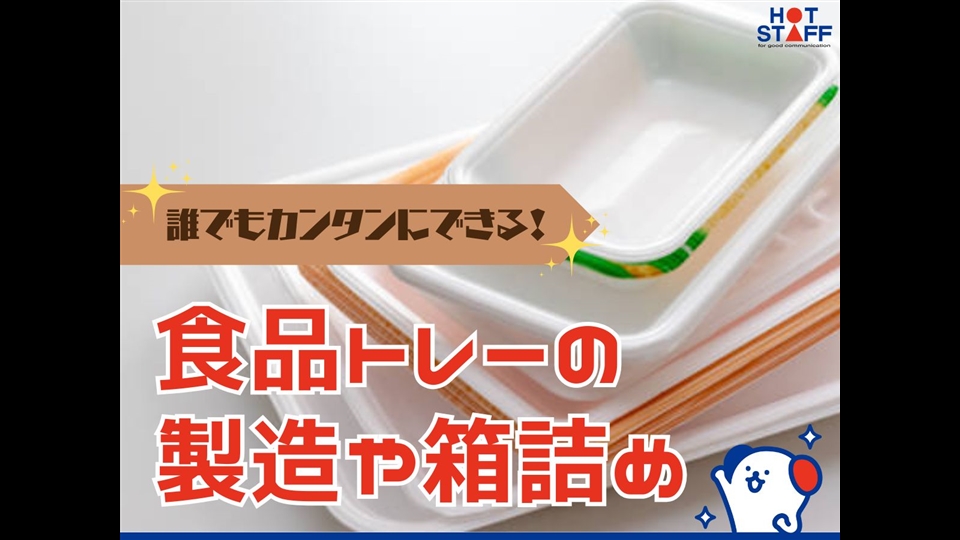 【重いものなし】食品トレーの製造や箱詰め/土日祝休み/未経験OK