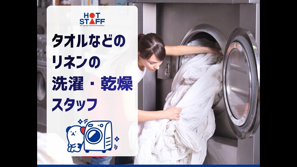 【大量募集】タオルなどのリネンの洗濯・乾燥スタッフ/週3日~・時短OK/大型連休あり