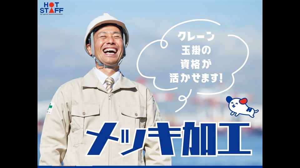 【時給1300円】クレーンで製品を吊りメッキ加工する作業/資格必須/土日休み