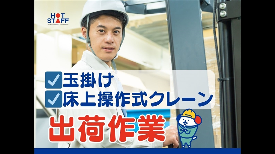 【資格を活かせる】玉掛けや床上操作式クレーンで製品の出荷作業/年間休日125日/月収22万以上