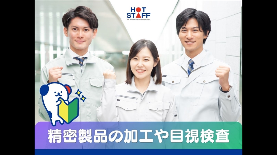 【冷暖房完備】土日祝休み/スピード入社できる/かる~い精密製品の加工や目視検査