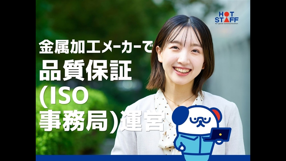 【時給1500円】金属加工メーカーで品質保証(ISO事務局)運営/経験が活かせる/土日祝休み