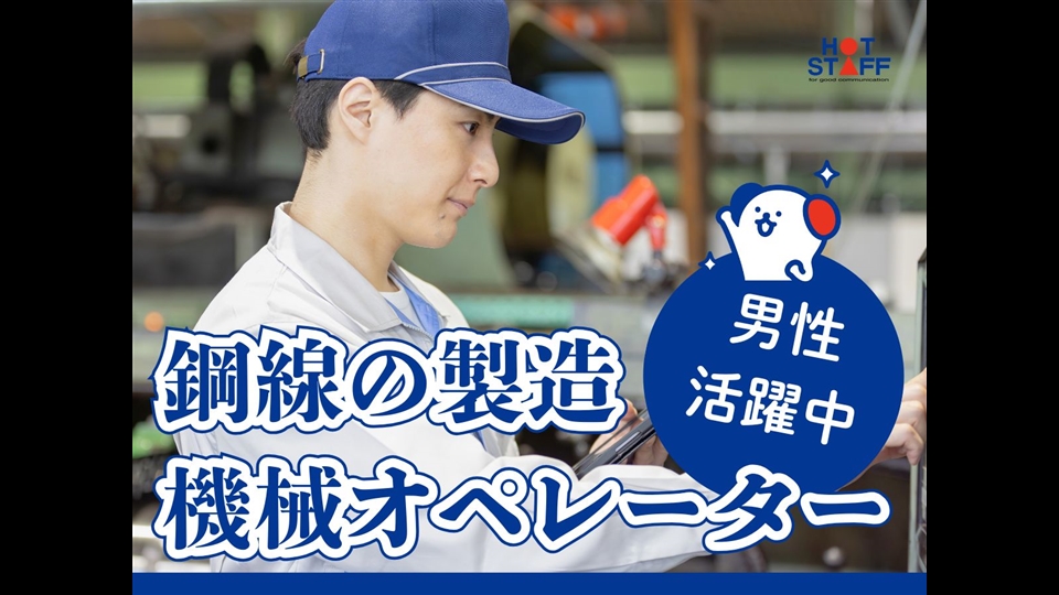【残業ほぼなし】鋼線の製造機械オペレーター/8:00~17:00/土日祝休み