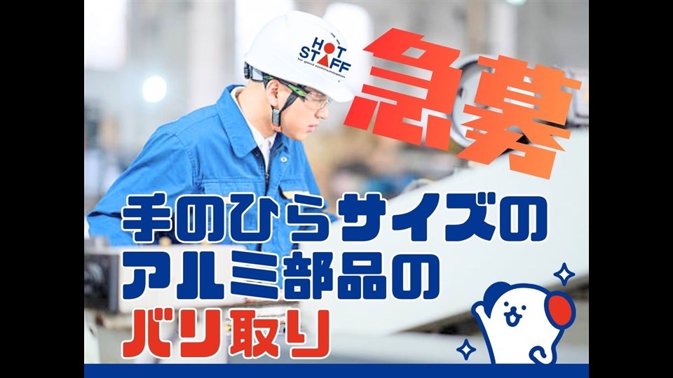 【即入社可能】手のひらサイズのアルミ製部品のバリ取り/好きな勤務時間で働ける/土日祝休み