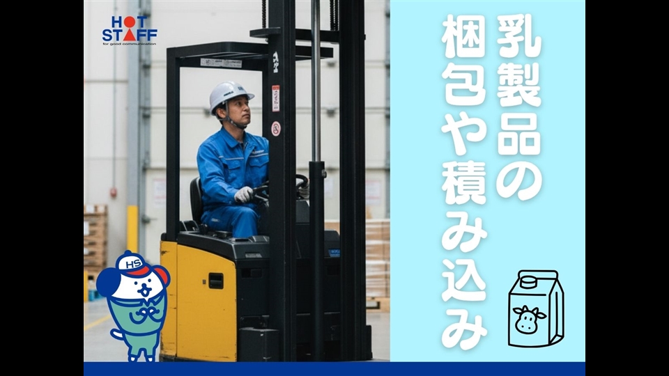 【フォークリフトの資格が活かせる】乳製品の梱包や積み込み作業/定着率抜群/日勤専属