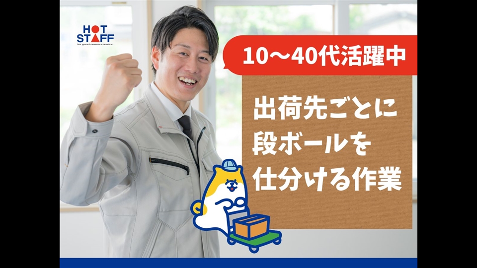 【もくもくできるシンプルワーク】出荷先ごとに段ボールを仕分ける作業/土日休み/未経験OK