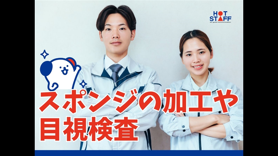 【機械にセットするだけ】スポンジの加工や目視検査/日勤専属/空調完備で年中快適
