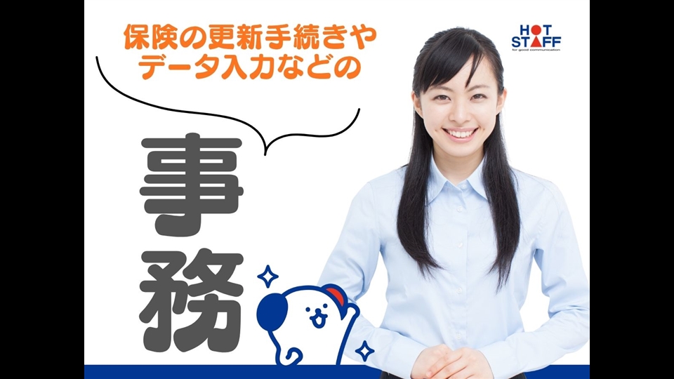 【事務経験を活かせる】土日祝休み/マニュアル完備/窓口にて保険の更新手続きやデータ入力などの事務