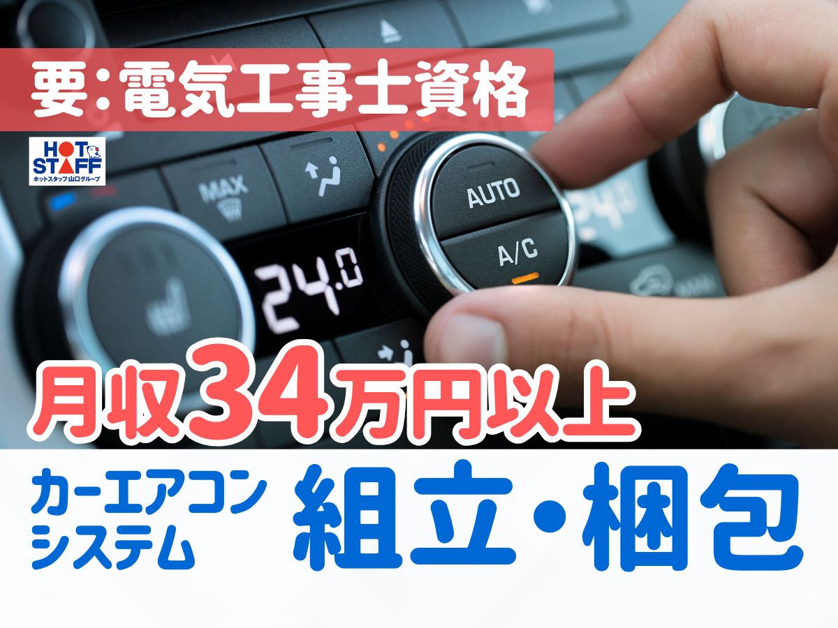 月収34万円以上★機械保全経験・電気工事士資格を活かせる!土日休み・2交替♪カーエアコンの組立・梱包!