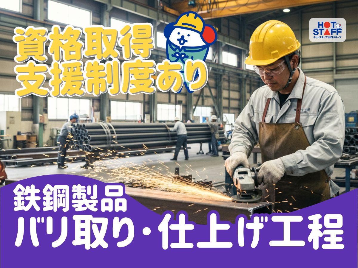 【高時給1,300円★】グラインダーで金属製品を削る!土日祝休み&日勤のみ★未経験OK♪