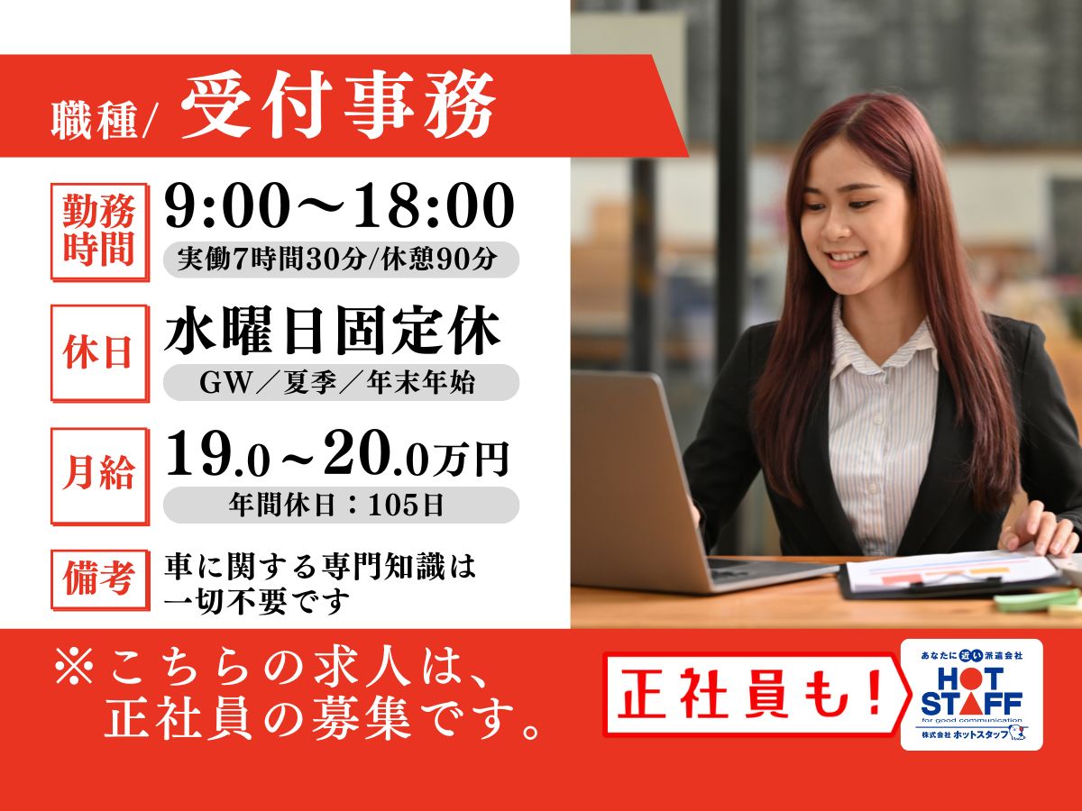 正社員募集/カーディーラーの受付★水曜日固定休み!評価・昇給制度あり♪