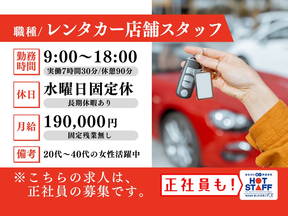 【正社員募集】レンタカー屋さんの受付や洗車など♪水曜固定休み★未経験者歓迎!