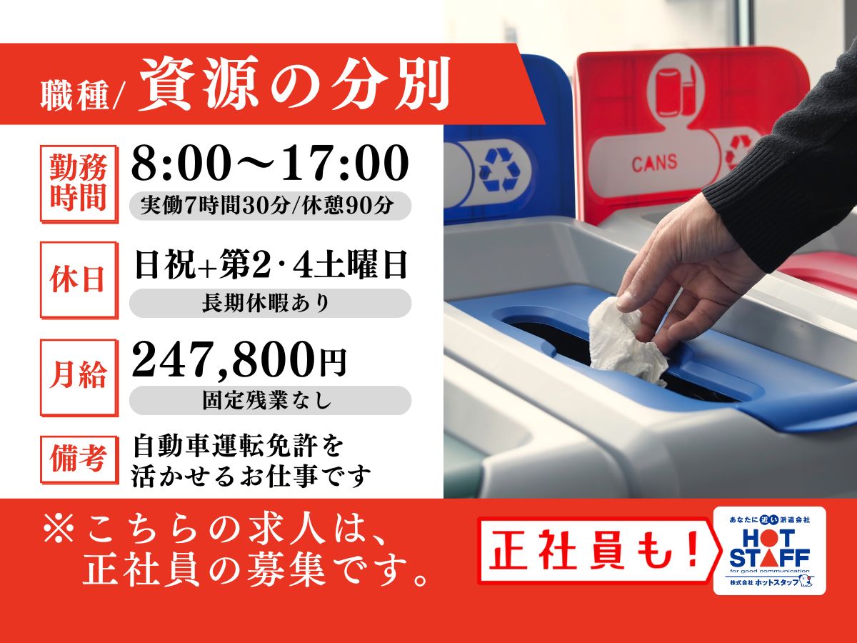 【正社員募集!】紙やプラスチックの仕分け・分別★未経験OK!風通しの良い職場◎