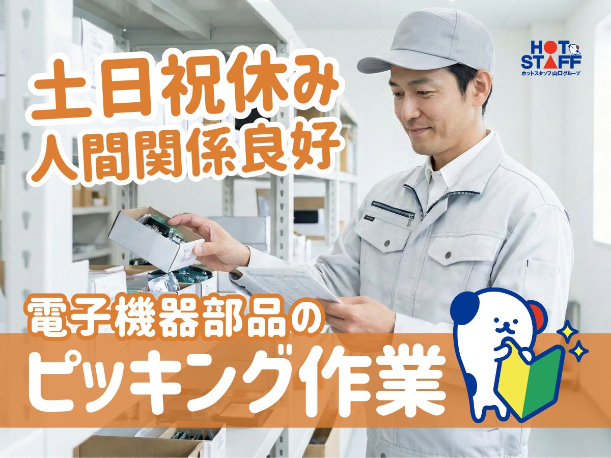 ★土日祝休み&月収25万円以上可能★キレイな倉庫で電子機器部品のピッキング!