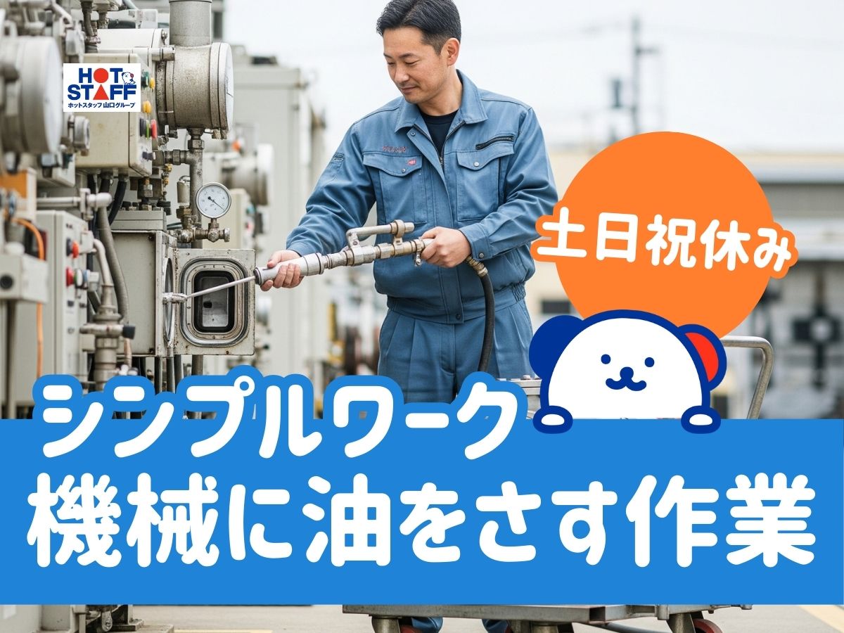 機械に油を入れる作業★土日祝休み&日勤!二人一組のシンプルWORK☆彡