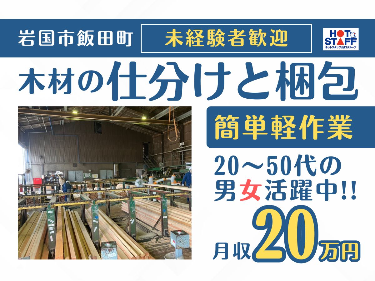 木材をサイズごとに分けて束ねるダケ★未経験OK!基本土日休み♪