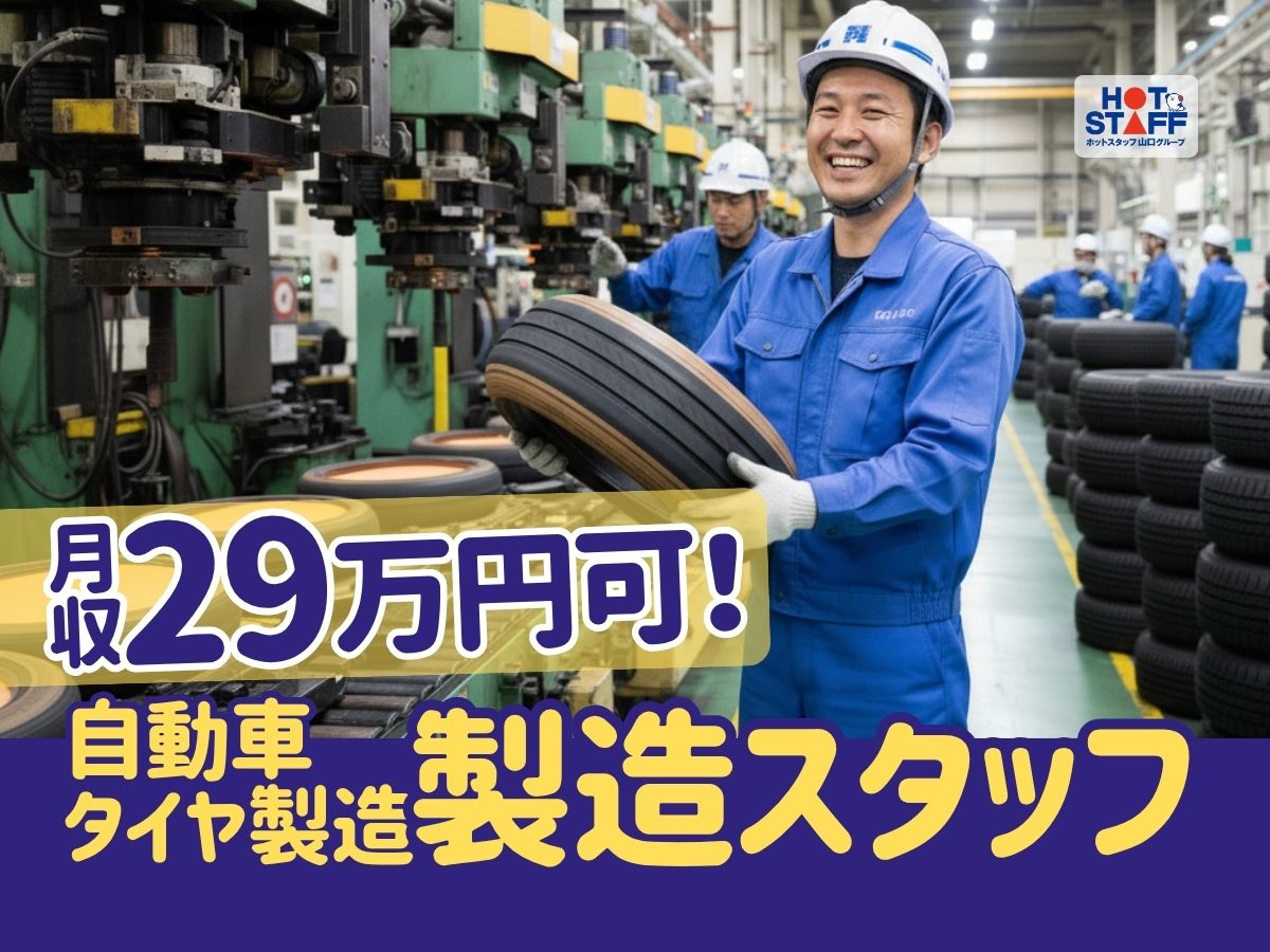 月収29万円以上/未経験から稼げるタイヤ製造/3交替制&夜勤割増で高収入/嬉しい土日休み