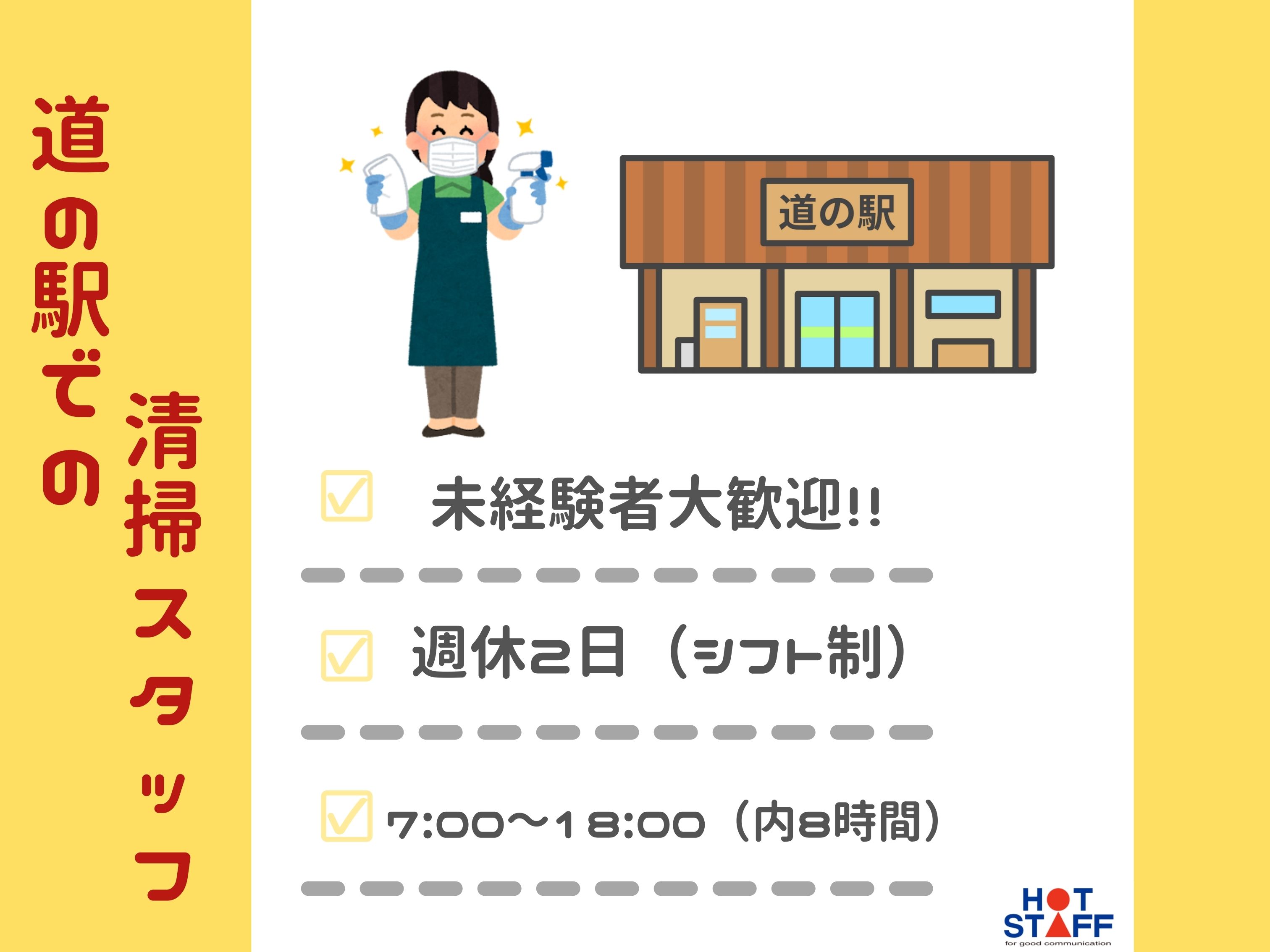 平日休みありでお探しの方♪/5時間~相談OK・週休2日/大人気の道の駅でもくもく清掃スタッフ