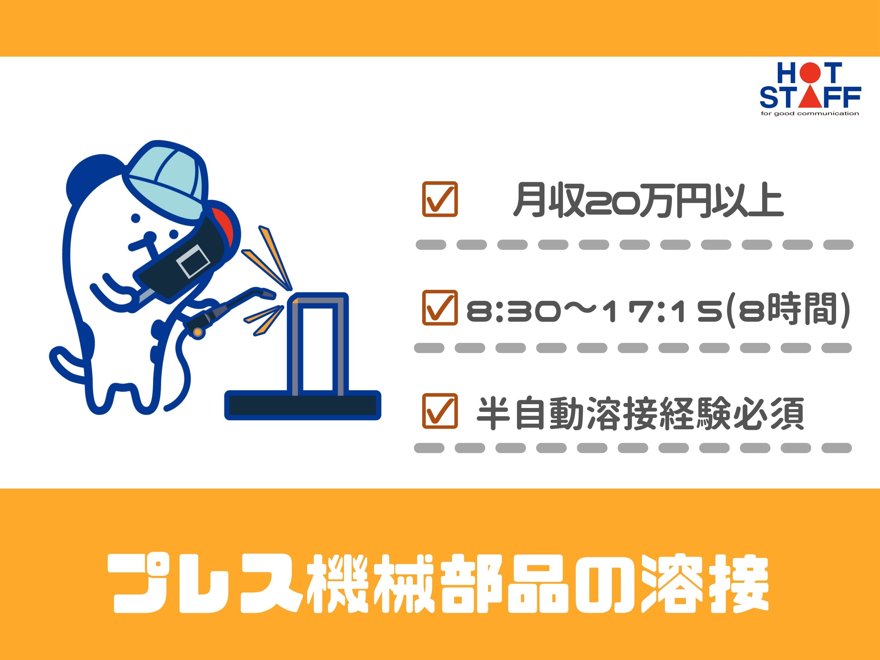 半自動溶接の経験を活かしての転職に♪/土日祝休み/食堂あり・髪色自由/プレス機械部品の溶接