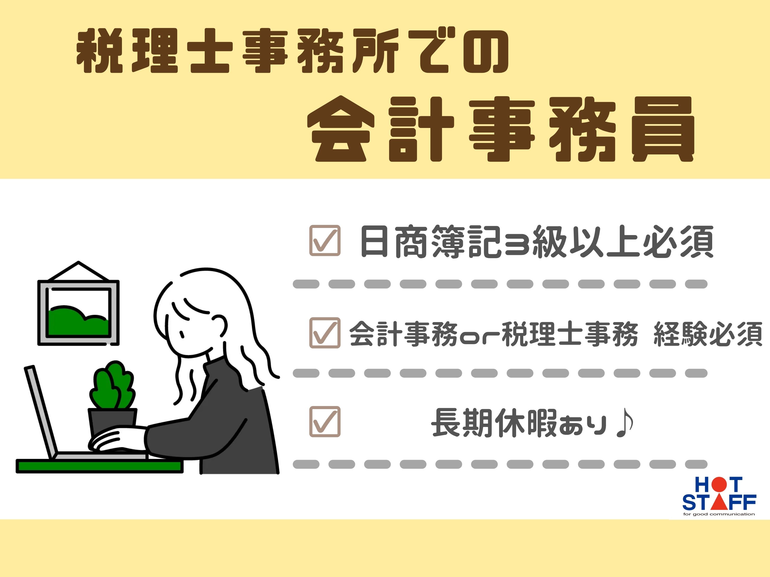 土日祝休み・長期休暇ありでお探しの方♪/日商簿記3級以上必須/税理士事務所での税務会計事務