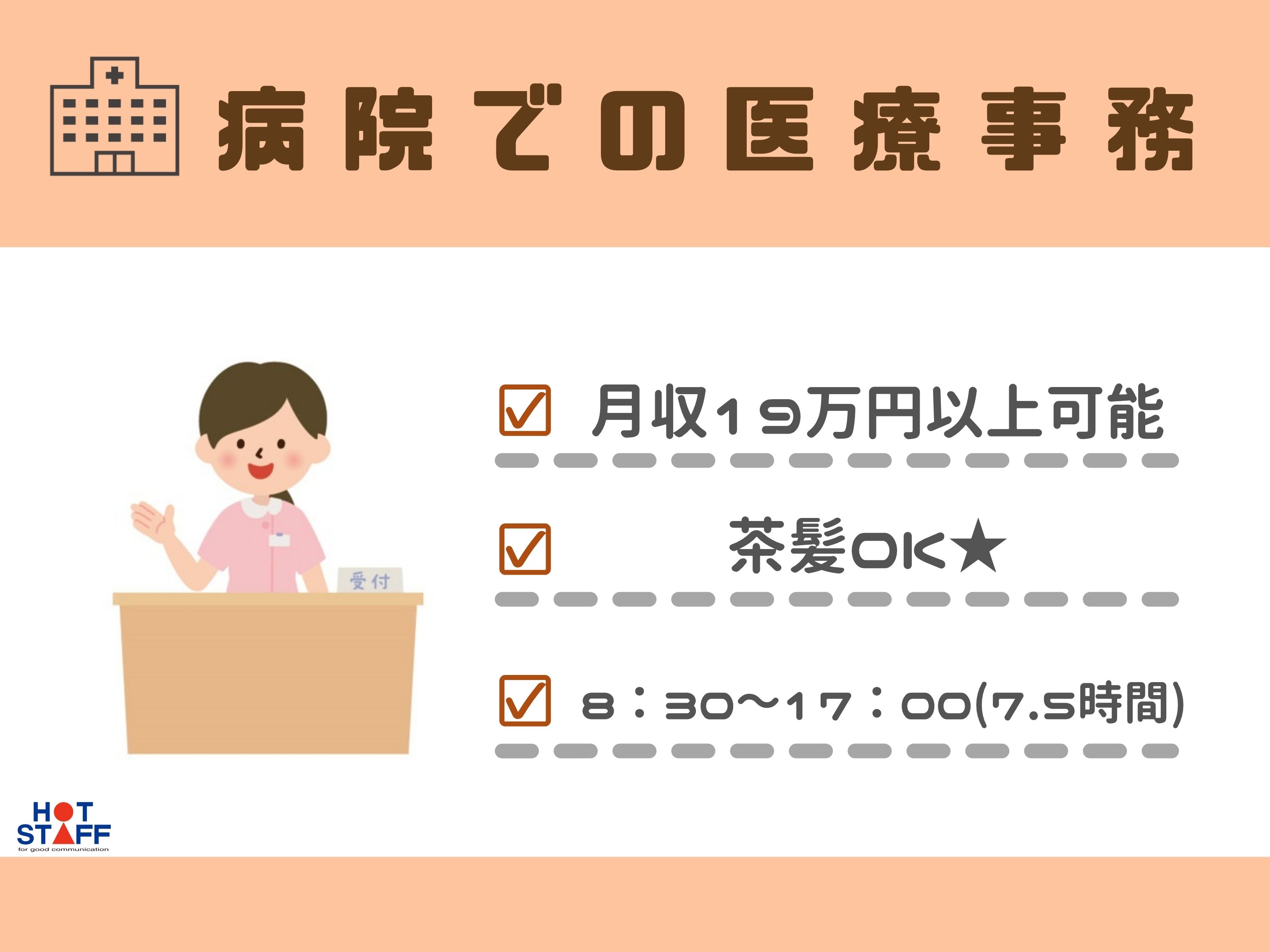 高時給1250円/土日祝休みでプライベートも充実/PC入力できればOK/病院で医療事務のお仕事☆