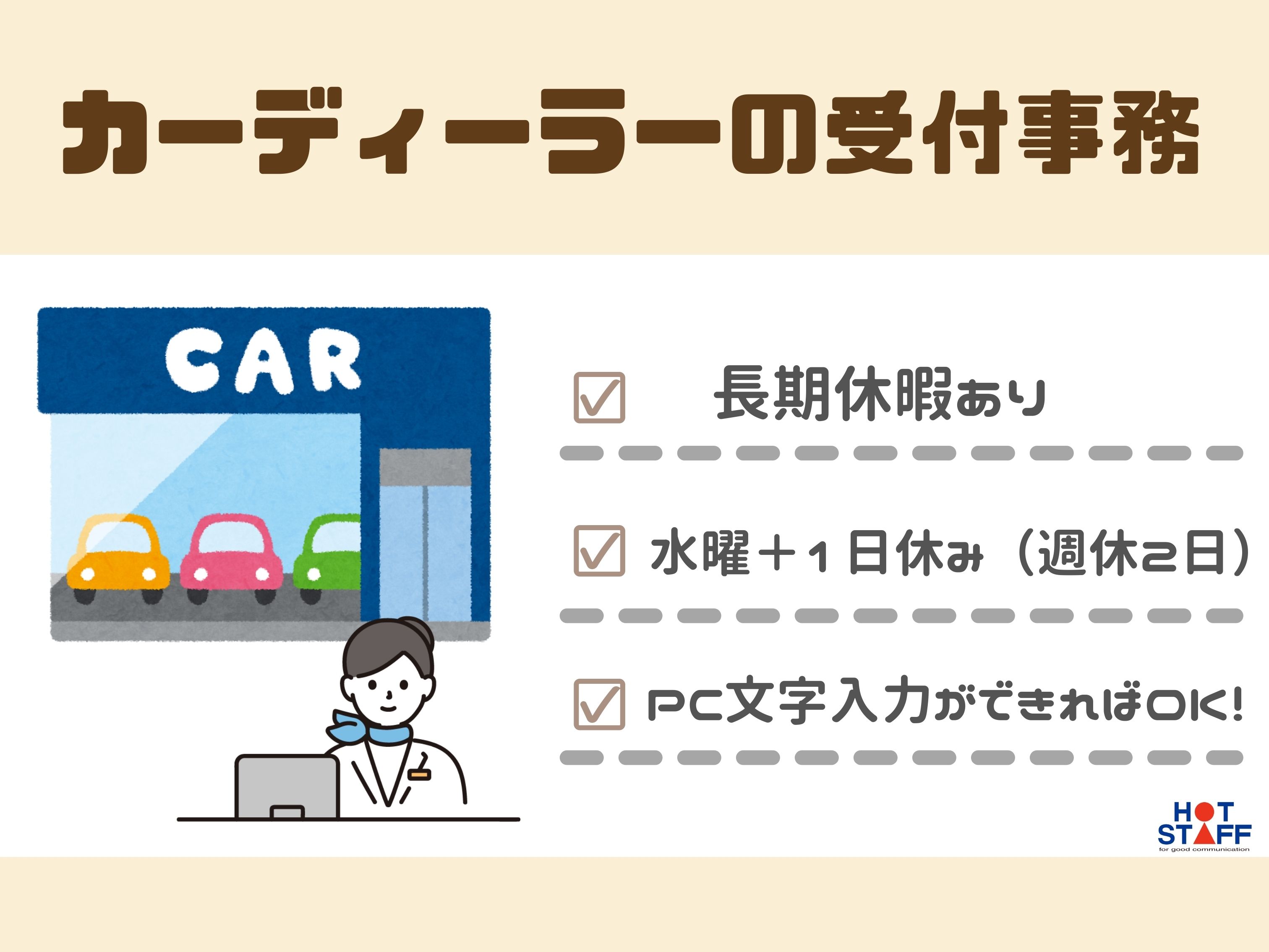未経験から受付事務デビュー♪/水+1日休み・6時間勤務・長期休暇あり/カーディーラーでの受付事務
