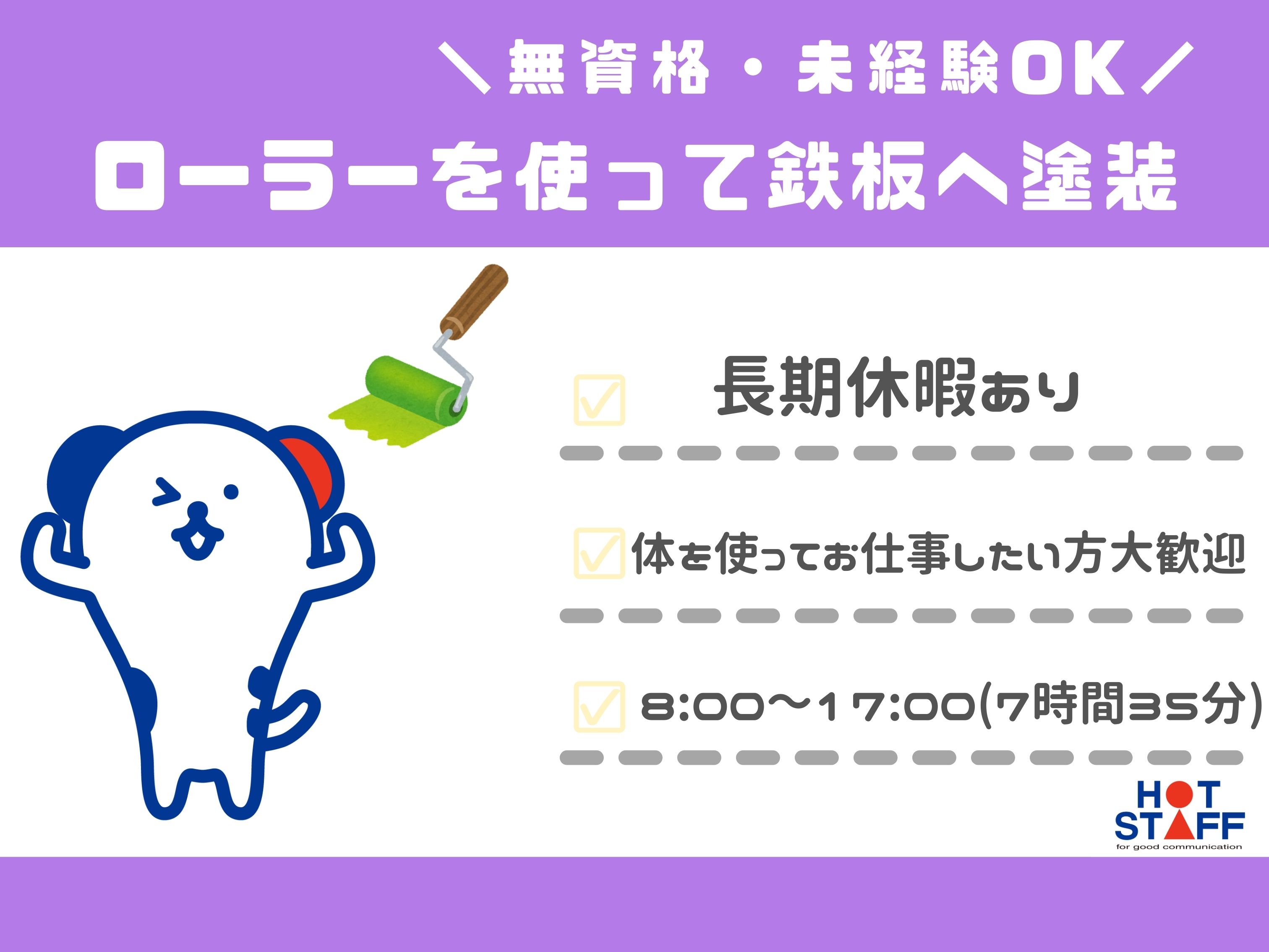 未経験から始められる♪/土日祝休み・長期休暇あり/ローラーを使って鉄板への塗装作業