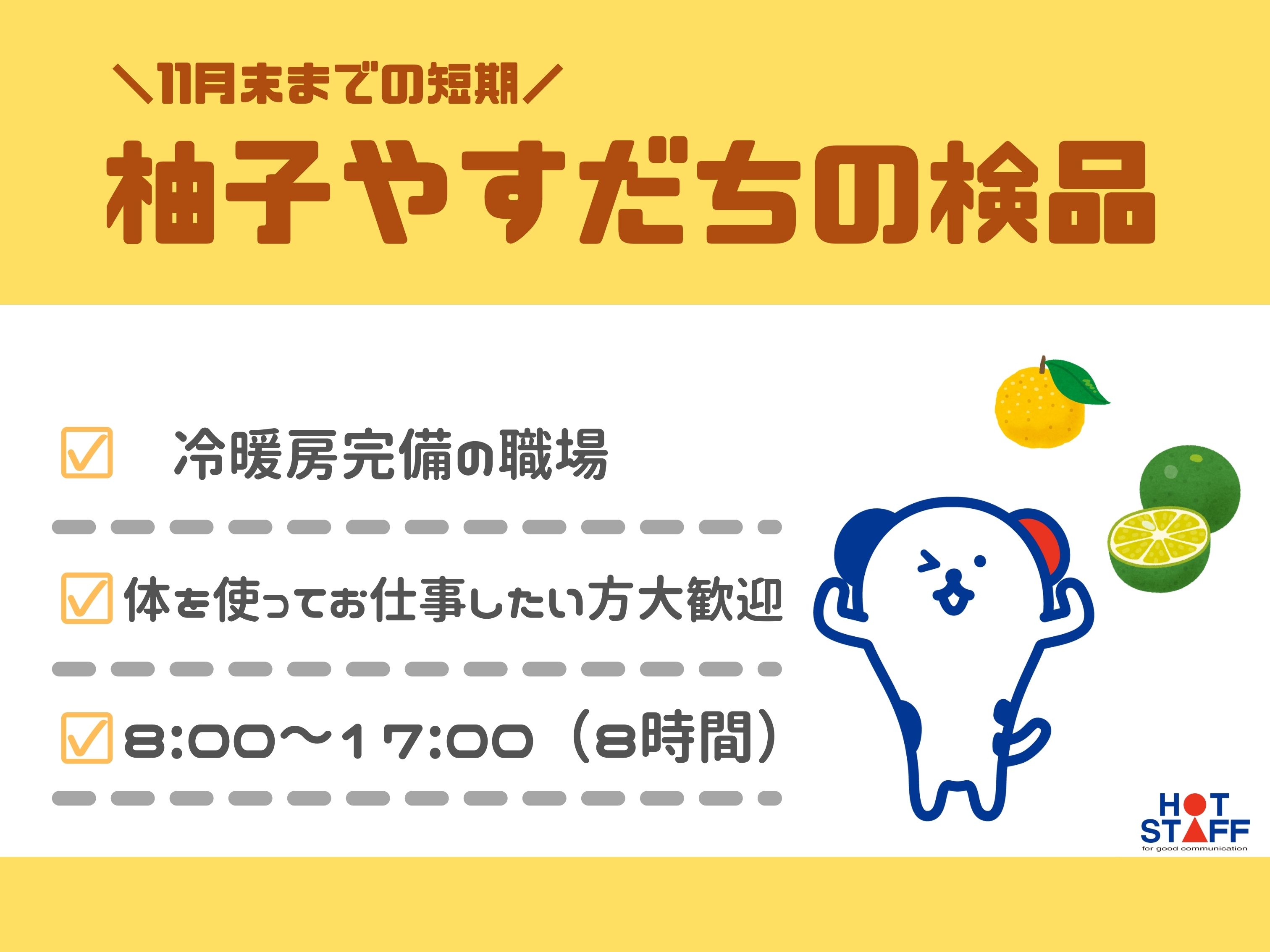 11月末までの短期間でお探しの方★/土日休み/もくもく作業/すだちや柚の検品など