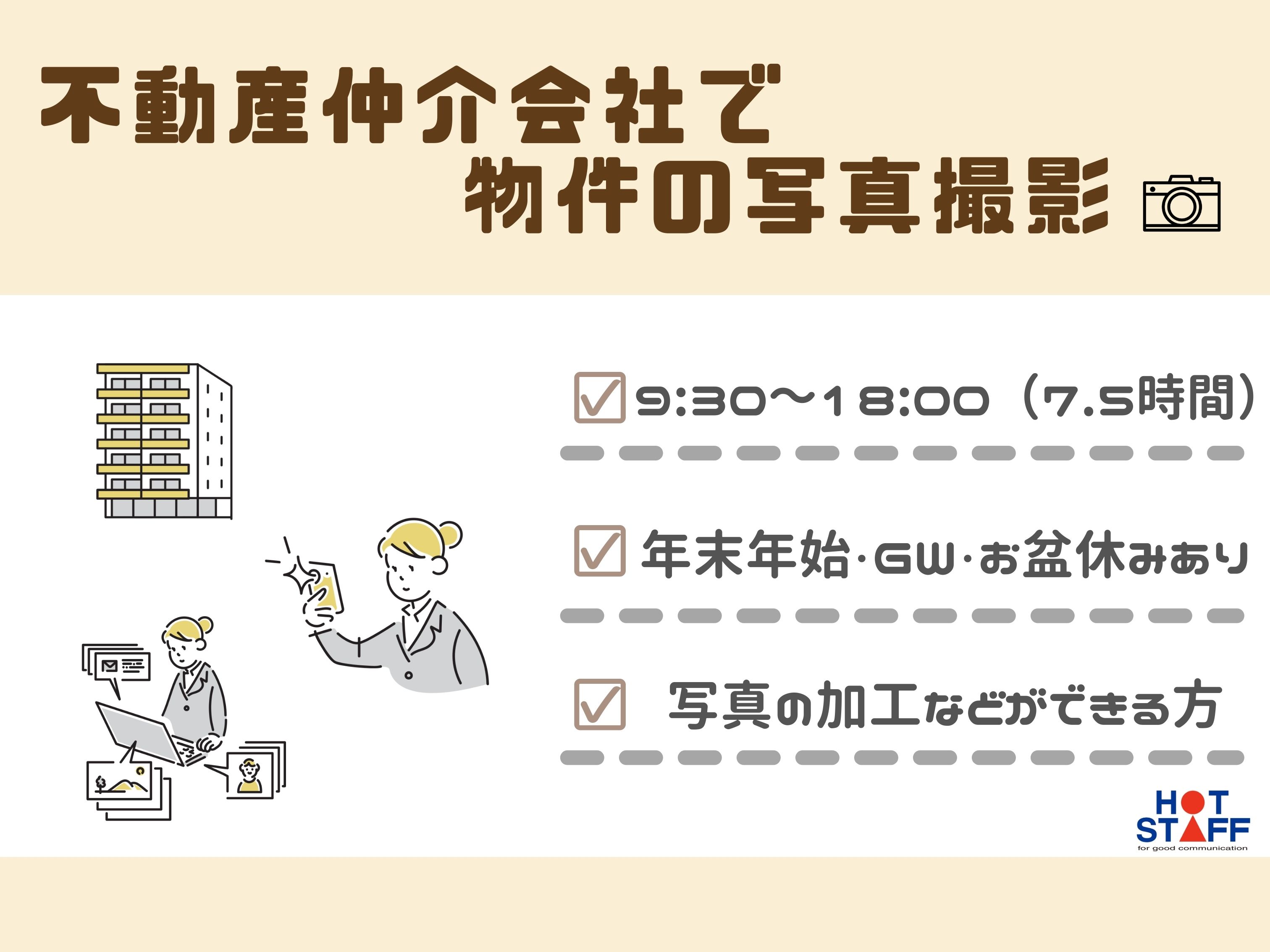 得意なことを活かせる♪/火水休み/自動車免許(AT限定可)必須/不動産会社で物件撮影や写真編集