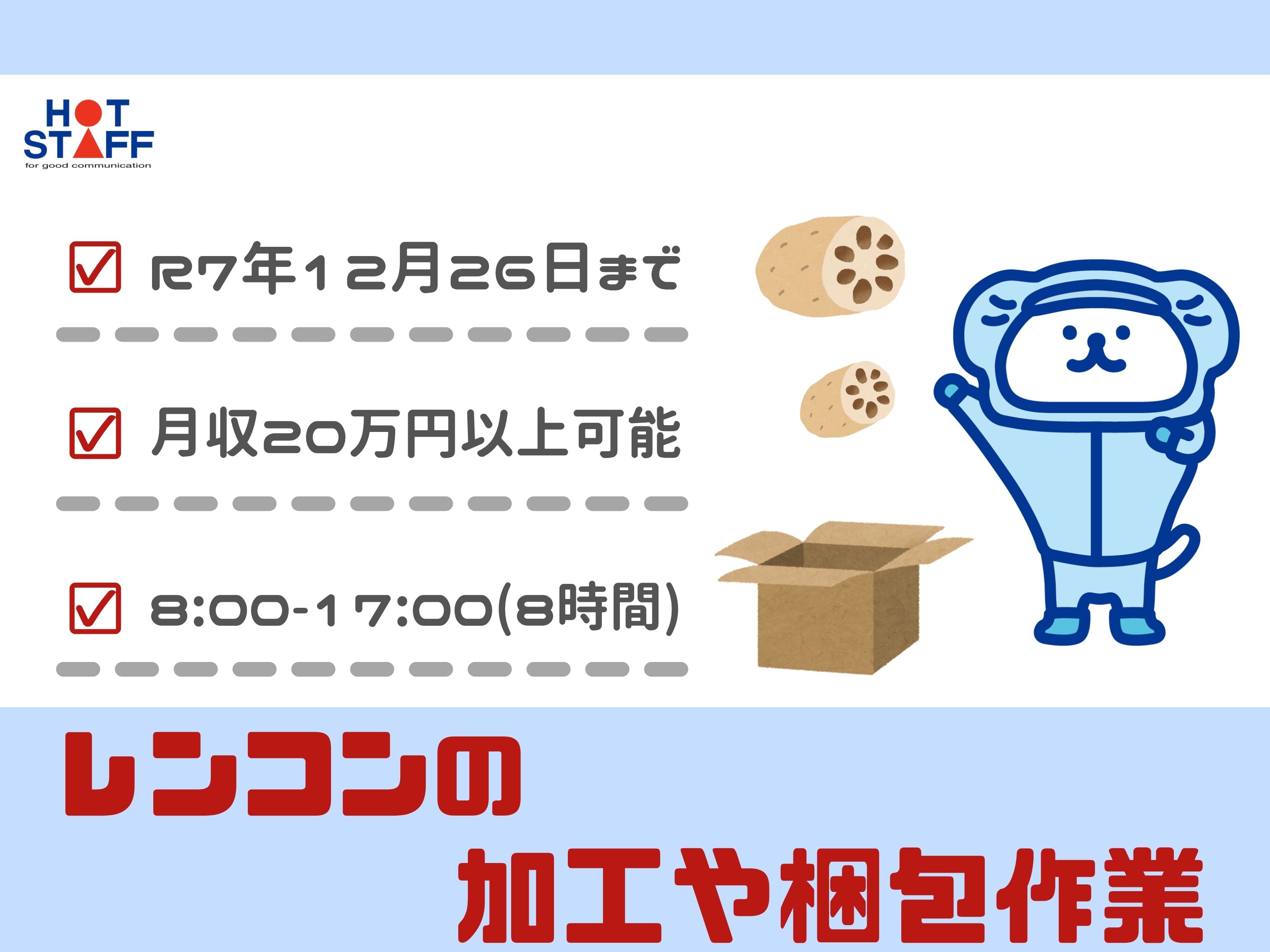R7年12月末まで・モクモク作業お探しの方必見★/土日(祝)休み/レンコンの加工や梱包作業