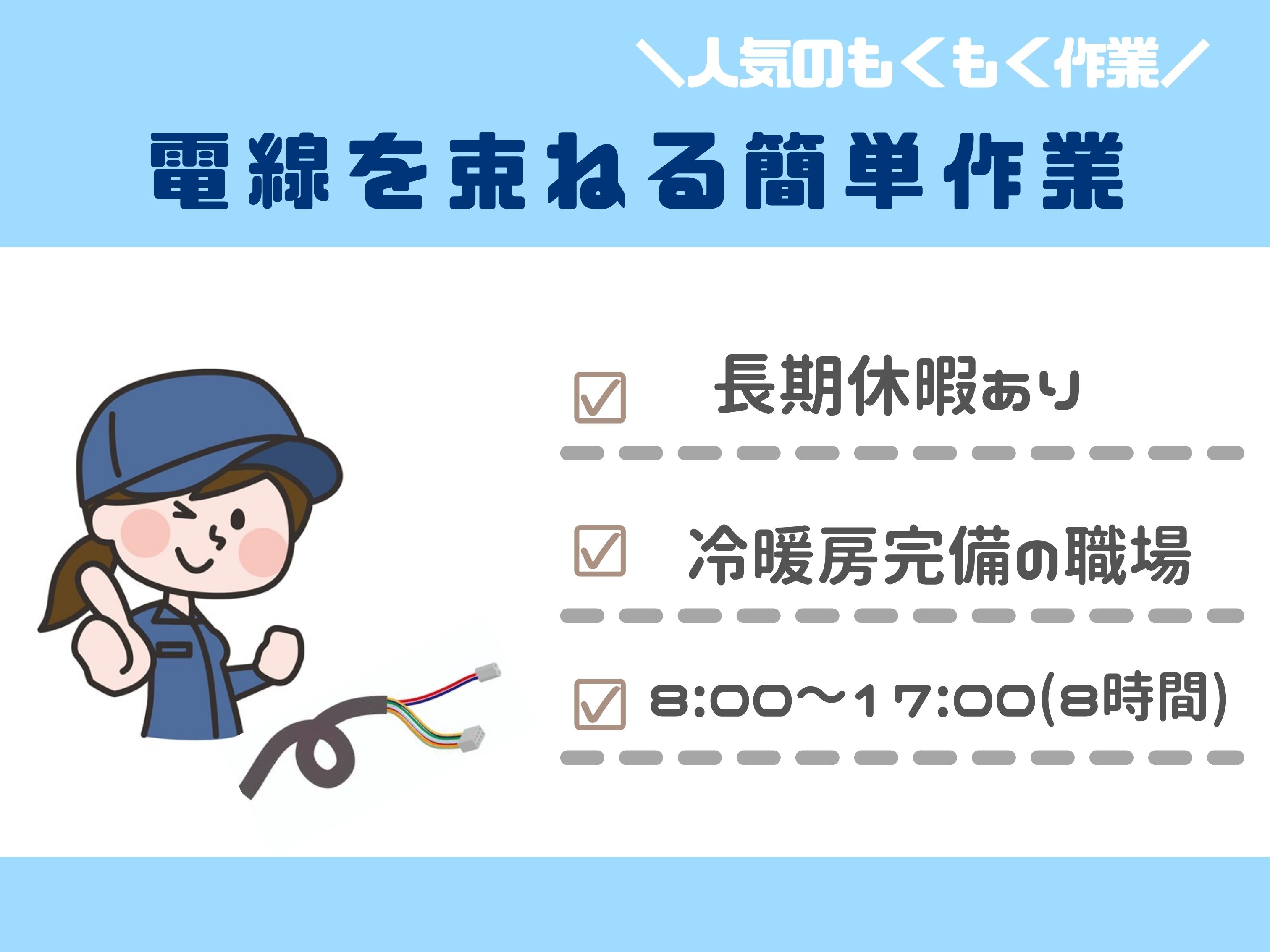 【土日祝休み・髪色ネイルピアス自由】未経験OK/年末年始等連休あり/ワイヤーハーネスの加工作業